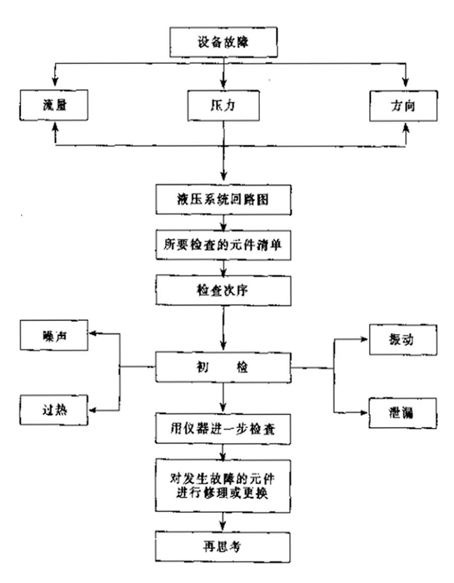 所谓液压系统故障的逻辑分析法即指根据液压系统的基本原理,进行逻辑分析,减少怀疑对象,逐渐逼近,找出故障发生部位的方法。